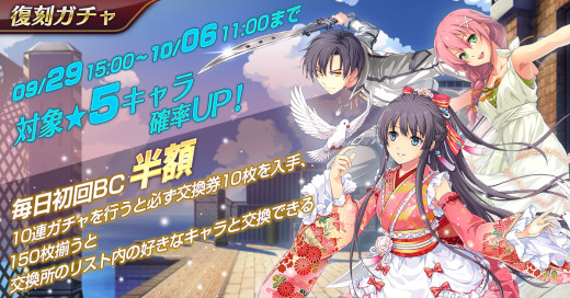 2022年9月29日(木)定期メンテナンスにて、「復刻イベントガチャ」を実装いたしました。