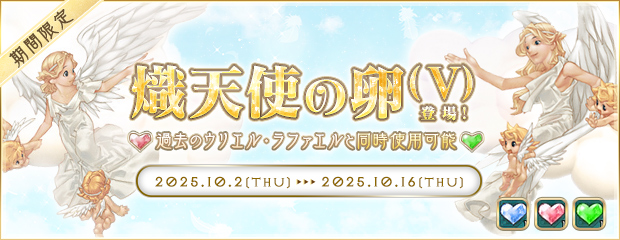 2025年10月2日(木)定期メンテナンス後から、エンジェルモールに「熾天使の卵(Ⅴ)」が再登場いたします。
