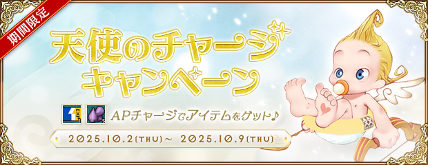 2025年10月2日(木)定期メンテナンス後から「天使のチャージキャンペーン」を実施いたします。