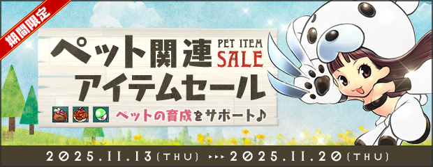 2025年11月13日(木)定期メンテナンス後から、「ペット関連アイテムセール」を実施いたします。