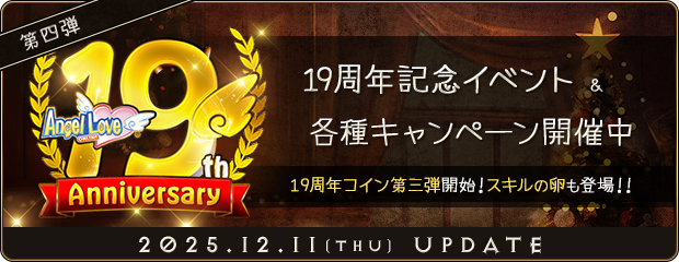 2025年12月11日(木)定期メンテナンス後から、「19周年記念イベント」第四弾を開催いたします。