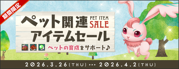 2026年3月26日(木)定期メンテナンス後から、「ペット関連アイテムセール」を実施いたします。
